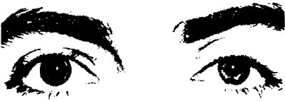Fig. 5. Pharmacologic sympathetic stimulation, right-sided. Palpebral fissure wide open, protrusion, mydriasis. From Hollwich(16), with kind permission.