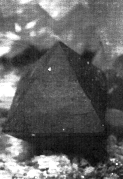 Fig. 7. Cuprite octahedron on calcite; light-related precious stone quality of copper as "warmth metal" (with kind permission of Weleda).