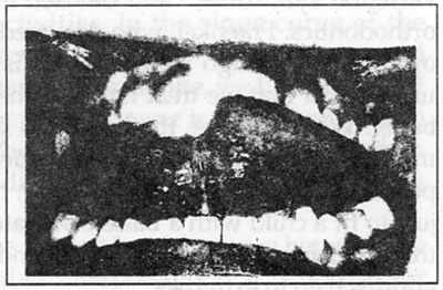 back. If, however, the lower front teeth actually bite into the palate, then,