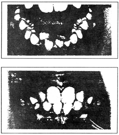 To return to prognathism. In both deciduous and permanent dentures it is normal for the upper teeth to lie anterior to and partly enclose the lower