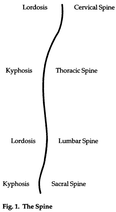 spine with lordosis. Below this lie the less mobile thoracic vertebrae which