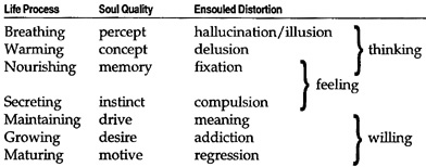 more life-filled quality; the thinking, feeling and willing have a more dream-like quality not guided by the ego.
