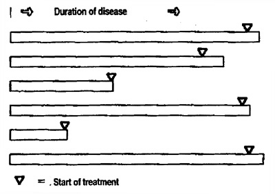 Essentially the method bases on a criterion often used in everyday clinical practice - the ratio of times for which symptoms persisted before and after treatment. If the time for which symptoms persisted after starting treatment is relatively short compared to the time before treatment, this may be taken to indicate that the treatment was successful. Results are most impressive if the post-treatment period comes close to zero. This is the kind of "instant cure" known from neural therapy, for instance. But when symptoms have persisted for five years, for example, and have disappeared four weeks after starting treatment, this, too, is a powerful indication of efficacy.