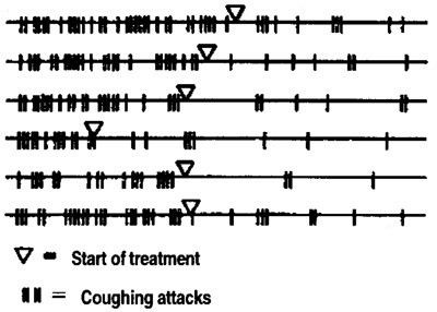 A number of variations seem feasible. The following type of graphic presentation might be used, for example, to give a convincing demonstration that the frequency of whooping cough attacks decreased with a particular treatment.